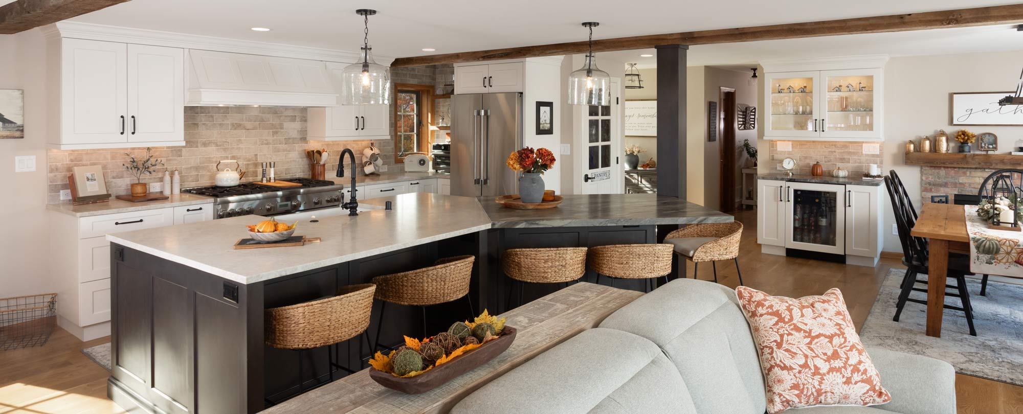 This full kitchen reconfiguration and primary suite remodel reimagines lakeside living with a blend of relaxed comfort and understated indulgence. The home’s modern farmhouse character is reinvented with a serene, sophisticated palette, creating a space that feels both timeless and enduring.